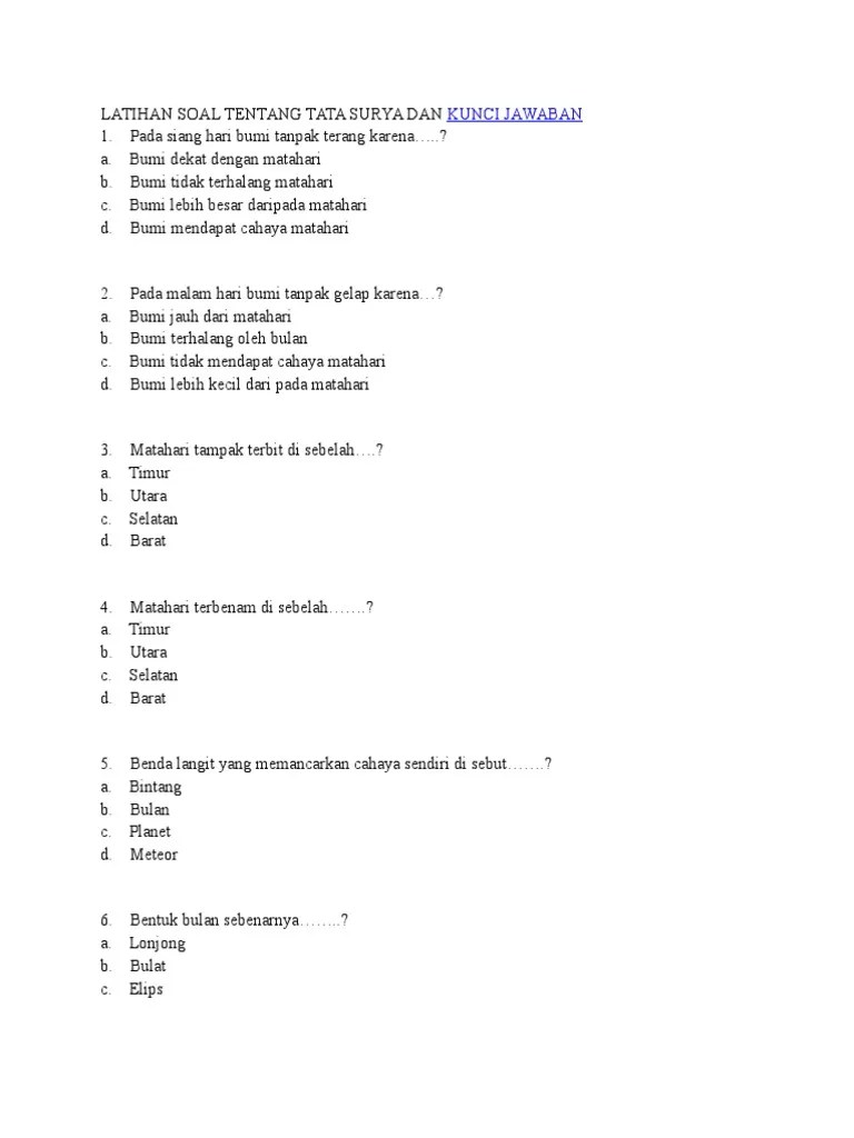 Posting Komentar untuk "Kumpulan Soal Sistem Tata Surya : Latihan Soal Tentang Tata Surya Dan Kunci Jawaban Pdf - Latihan soal ipa materi tata surya dan pembahasan."